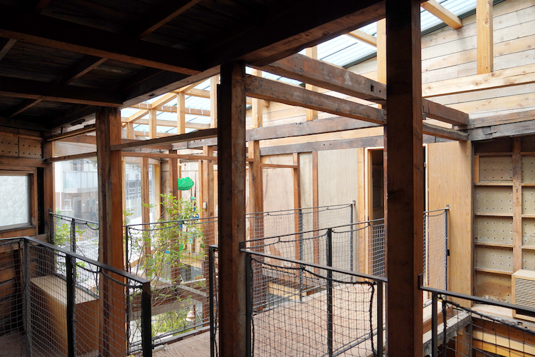 造船業で栄えていた際に使われていた長屋を建築家が主導してギャラリーやカフェ、テナントなどの地域の文化芸術拠点として利用している。その際、建築家は下町の店舗付き住居として使われることで長年蓄積されてきた建物の記憶を部材と一つずつ向き合い、その都度それらの部材の活かし方を考えることで建物の記憶を拾い上げ、モノに込められた様々な時間が建物という一つのかたまりとして集積した独特の質となって空間に立ち現れている。