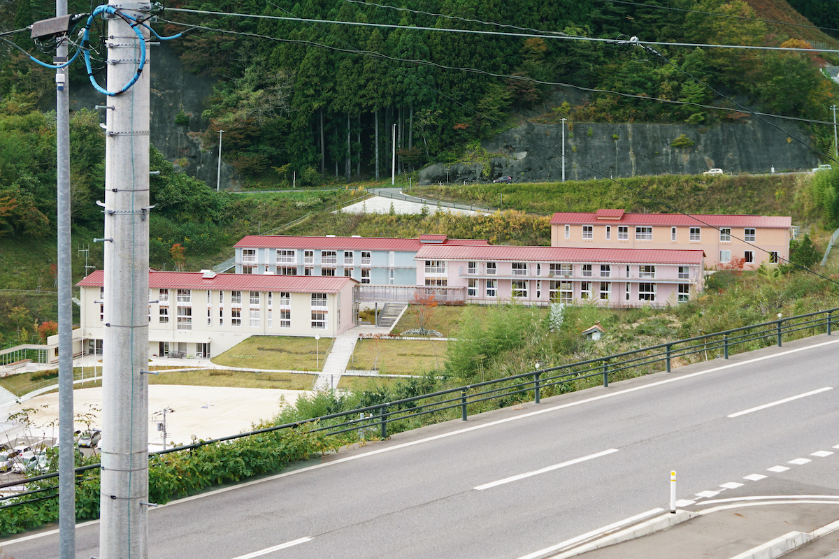 成長期に開発された住宅地の中心に、かつてのスーパーマーケット跡地を再生するかたちで、認知症グループホーム・小規模多機能型居宅介護・就労継続支援・放課後等デイサービスなどが集められた福祉拠点がつくられた。屋根付きの半屋外空間であるロッジアを設けて、複数のケアの場がゆるやかにまとめられている。